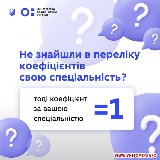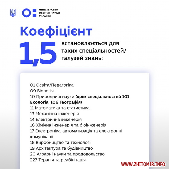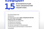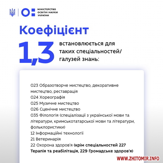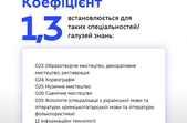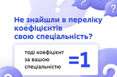 Детальніше про розподіл коефіцієнтів, відповідно до спеціальності/галузі дивіться у інфографіці нижче