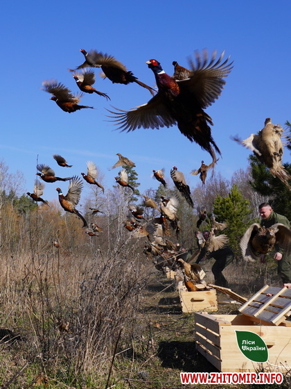 Нагадаємо, 22 березня в Житомирській області мисливствознавці випустили в дику природу фазанів, які виросли у вольєрах на власному фазанарію в Пилипівському лісництві. Надалі пташки будуть під опікою єгерської служби та лісової охорони.