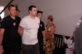 Ось ведуть обвинувачених, вісім з них перебувають під вартою, двоє на цілодобовому домашньому арешті. Їх зустрічають з вигуками «Ганьба!».