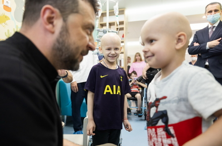 «Цими вихідними Володимир Зеленський разом із дружиною Оленою Зеленською відвідали дитячу лікарню Охматдит аби ознайомитись з детальним планом її відбудови. Та, як виявилось, тисячі переглядів та лайків зібрав не сам візит до лікарні чи слова Президента, а маленький хлопчик, який вирішив кумедно нахилитись до Верховного Головнокомандувача та легенько буцнути його в лоба. Відомого вже хлопчика зі знаменитого відео з Президентом Володимиром Зеленським, яке ширилось вихідними по усіх соцмережах звати Дмитрик. Йому вже виповнилось 4 роки, але половину свого життя він провів у Києві, а саме — у стінах Охматдиту, які замінили йому дім та початок дитинства», - йдеться у повідомленні.