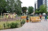 Обидва сквери мають рівне покриття з плитки та пониження.