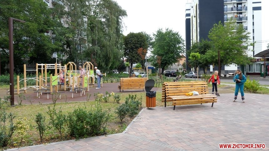 Наразі територія має гарний вигляд, зокрема: рослини - доглянуті, смітники - порожні, а лавочки - цілі. Житомиряни кажуть, що це комфортне місце для перепочинку.