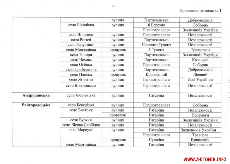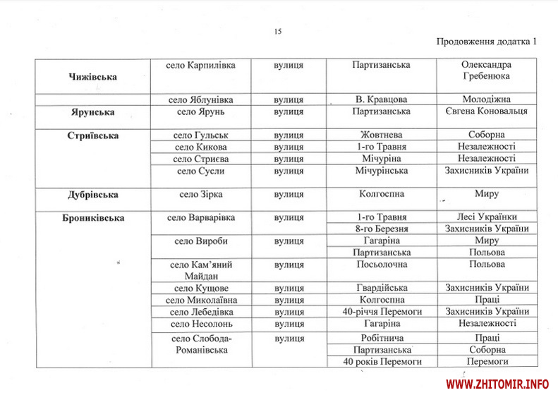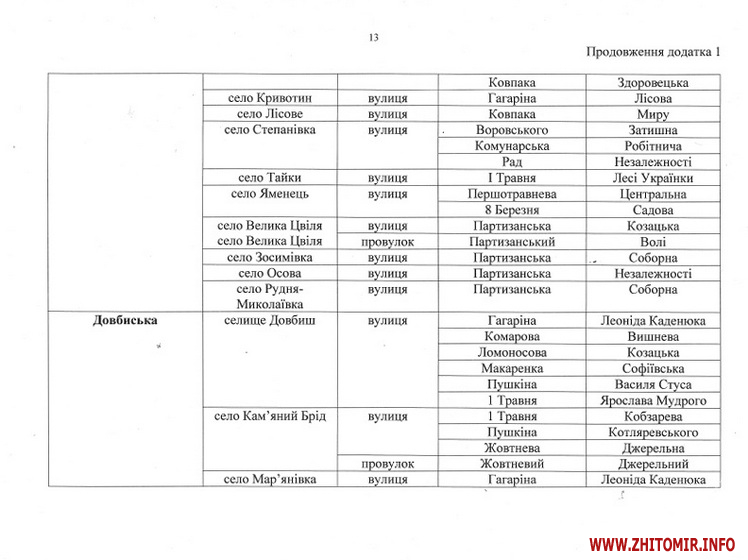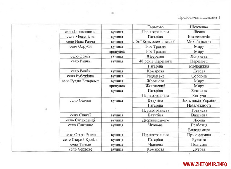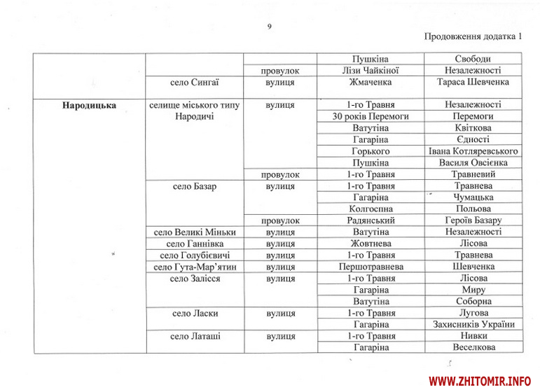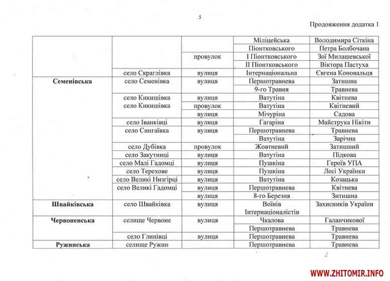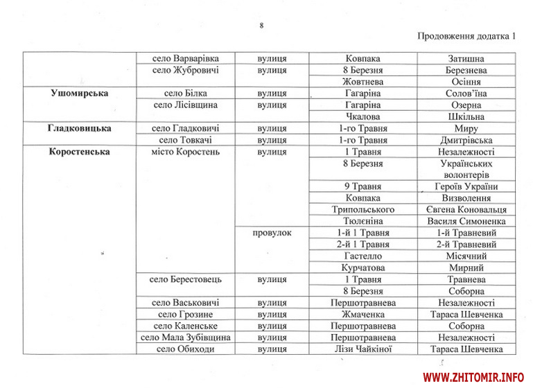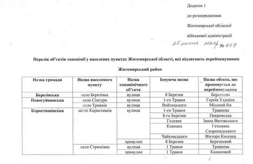 Житомирська ОВА допомогла з перейменуванням вулиць, майданів та провулків, громадам, які не зробили цього самостійно у відведений законодавством термін.