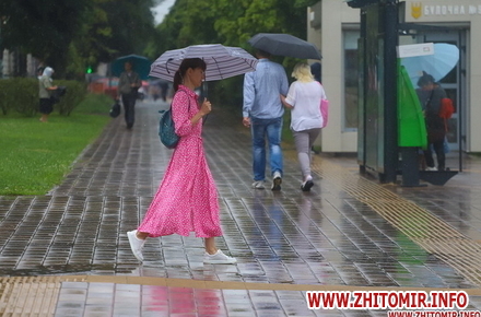 По Житомиру: Хмарно з проясненнями. Вночі без опадів. Вдень помірний короткочасний дощ. Вітер північний, 5-10 м/с. Температура вночі 15-17°, вдень 24-26°.