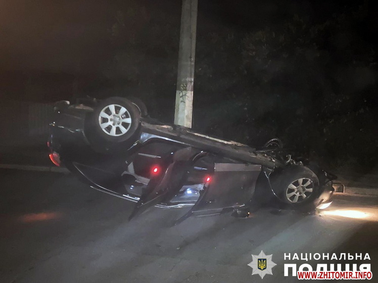 У Житомирі на дорозі перекинувся автомобіль, дорожньо-транспортна пригода сталася 10 серпня близько 00:50 на проспекті Незалежності.