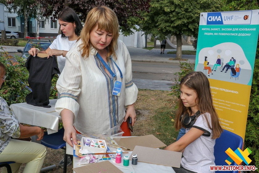 «Тут можна взяти участь у дискусійних панелях, зробити яскраві фотографії, долучитися до майстеркласів. Серед громадських організацій та комунальних установ, які пропонують свої послуги та залучають до активностей, «Пластовий молодіжний центр», Міський культурно-спортивний центр, клуб «Віраж», ярмарок бізнесу «Молоді акули», Житомирська обласна організація Товариства Червоного Хреста України, IT STEP SCHOOL. Сьогодні на локації організації розповідають про можливості для молоді та проводять арттерапію – декорують одяг та розмальовують футболки. Є дитяча зона, настільні ігри та психологічні консультації, які наразі є дуже актуальними. Наприкінці вечора на гостей чекають виступи шоу-проєкту «Мардіс» та Театру Вогню і Світла «Дім Сонця», - йдеться у повідомленні.