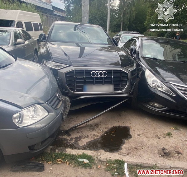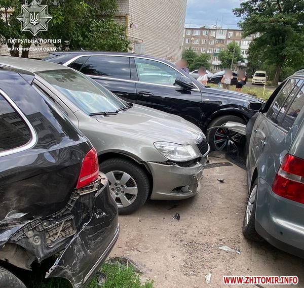 У Житомирі на провулку Вацківському водій з ознаками алкогольного сп'яніння вчинив ДТП за участю 5 автомобілів, патрульні склали адміністративні матеріали.