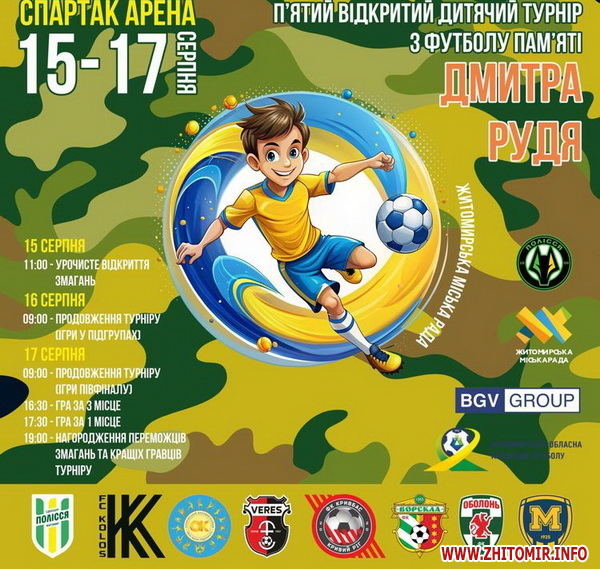 З 15 по 17 серпня у Житомирі відбудеться відкритий дитячий турнір з футболу памʼяті Дмитра Рудя.