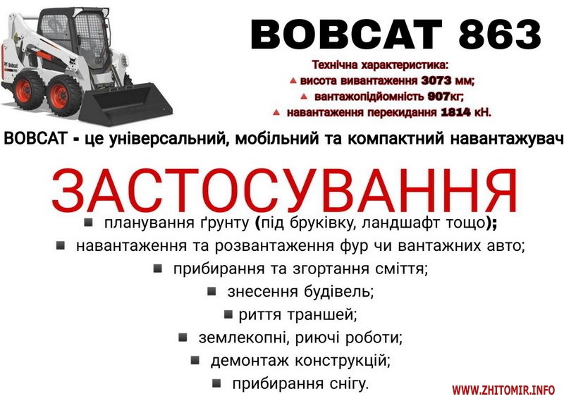 - Bobcat (навантажувач, екскаватор);