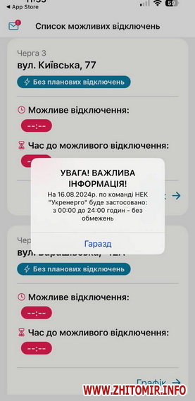 В АТ «Житомиробленерго» нагадують, що офіційну та оперативну інформацію про застосування графіків погодинних відключень (ГПВ) також можна знайти на офіційному сайті АТ «Житомиробленерго» за посиланням: https://www.ztoe.com.ua/unhooking-search.php