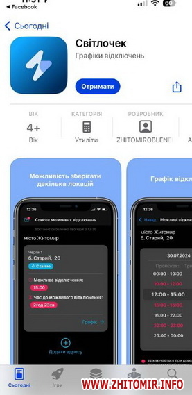 Відтепер моніторити погодинні відключення електроенергії у Житомирській області можна за допомогою застосунку «Світлочек».