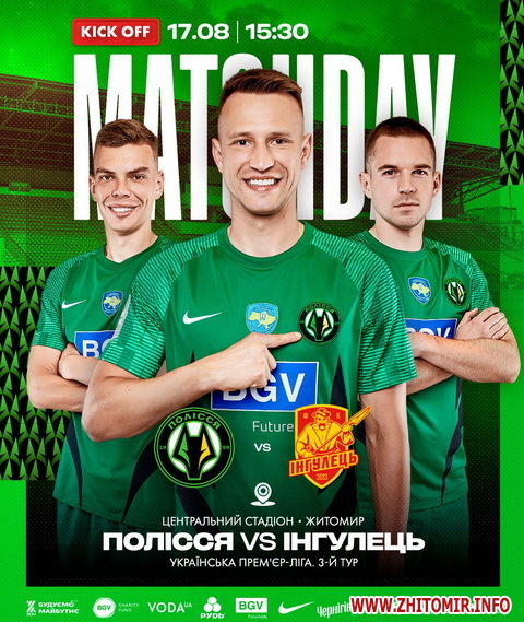 Сьогодні, 17 серпня, на центральному стадіоні «Полісся» житомирський футбольний клуб гратиме проти ФК «Інгулець», що представляє селище Петрове Кіровоградської області. З 13:30 для вболівальників працюватиме фан-зона.