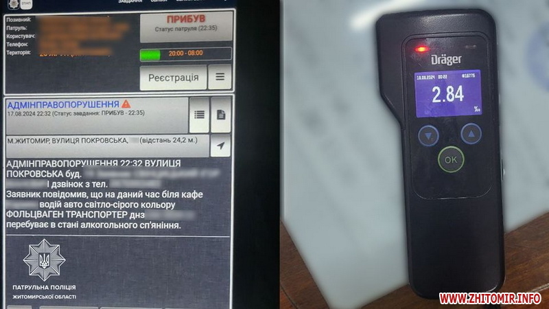 Пізно ввечері 17 серпня патрульні отримали повідомлення від чоловіка, який помітив нетверезу водійку на вул. Покровська у Житомирі.