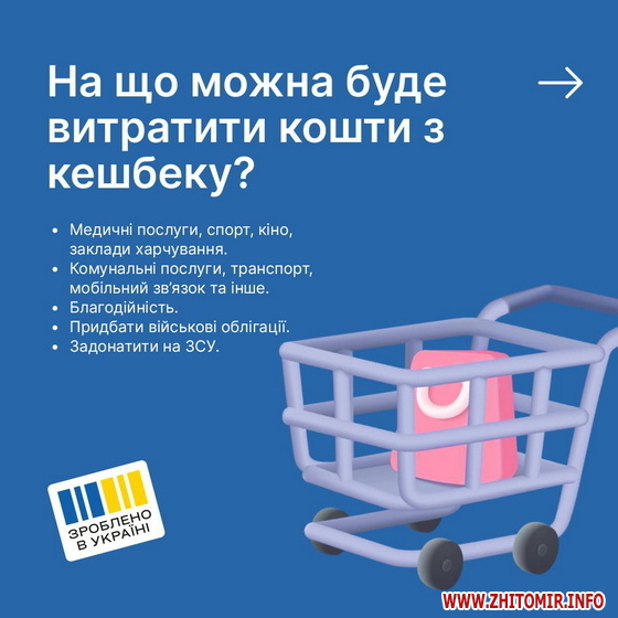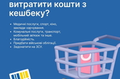 Отримані в рамках кешбеку кошти можна буде витратити на послуги – медичні, комунальні, спорт, кіно, квитки на потяг та інші. Або задонатити на ЗСУ чи купити військові облігації. Максимальний обсяг кешбека – 3 тис. грн за місяць.