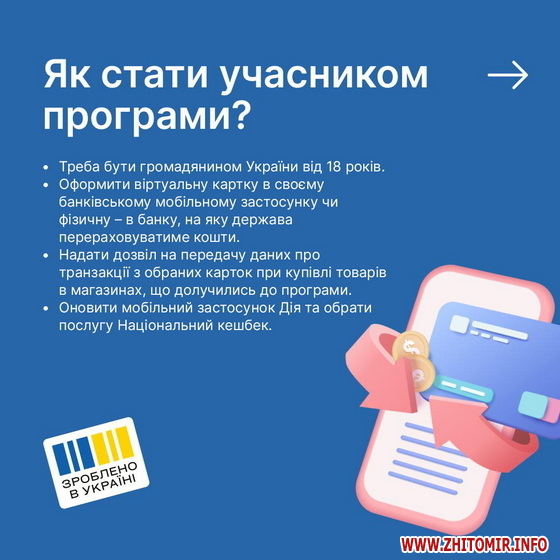 «Застосунком Дія вже користуються понад 20,7 млн українців. Саме тому це зручний інструмент для кожного громадянина, щоб отримати виплати за програмою «Національний кешбек», Сервіс буде доступний для українських виробників і продавців, які зможуть подати заявку на участь у програмі. А також для людей, які купують українське. У кілька кліків можна буде перевірити суму нарахованого й виплаченого кешбеку, а потім витратити його на певні послуги», - зазначив віцепремʼєр-міністр з інновацій, розвитку освіти, науки та технологій – міністр цифрової трансформації Михайло Федоров.