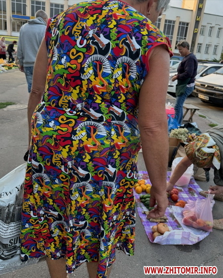 Зазвичай продавцями й покупцями є люди пенсійного віку, а житомирський фотограф Олексій Лубягін звернув увагу на яскравий та пістрявий одяг, переважно непритаманний жителям обласного центру.