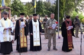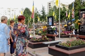 Рідні, військові, правоохоронці, рятувальники, представники влади та духовенства хвилиною мовчання вшанували пам'ять загиблих захисників України і після спільної молитви поклали квіти на могили.