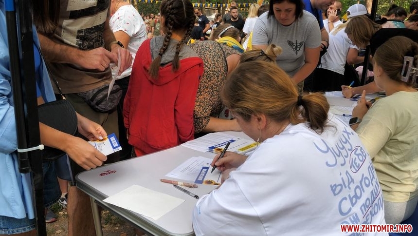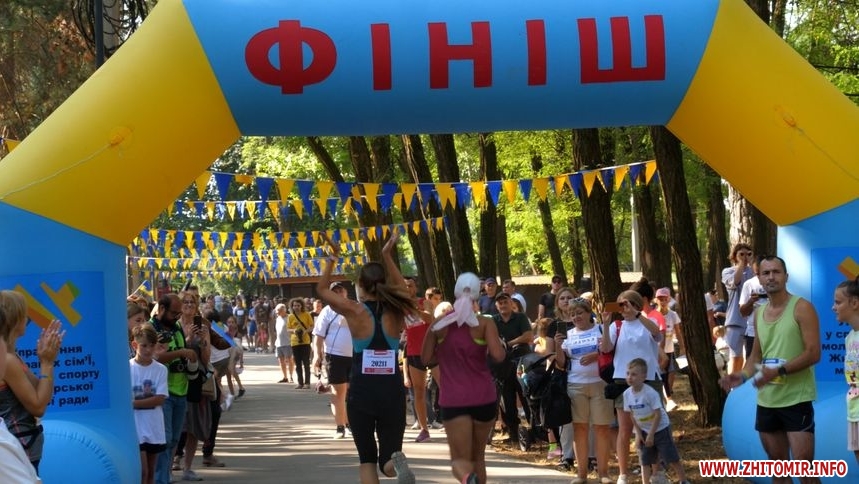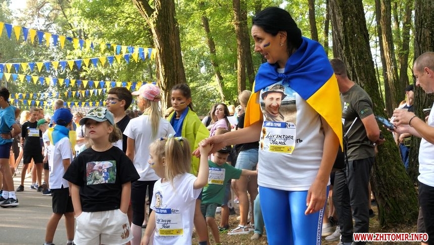 «Сьогодні ми проводимо забіг пам'яті загиблих героїв – «Шаную воїнів, біжу за Героїв України». Цей забіг відбувається зараз по всій Україні. Одночасно в цю дату, 31 серпня, о 9.30 стартуватимуть усі міста України на різні дистанції. Житомир обрав більше дистанцій, тому що у нас є багато охочих діток. Тому ми о 9.30 починаємо дистанцією дитячою у 200 метрів, потім 500. Найбільш масова дистанція – це 2,5 кілометри, її біжать мами, дружини загиблих, діти, військові, тобто багато учасників. Кінцеві дистанції – це 5 і 10 кілометрів, які долають вже більш підготовлені спортсмени. Забіг не на медалі, не на швидкість. Забіг пам'яті й вшанування родин героїв і самих героїв, які поклали життя за Україну. Ми маємо 800 роздрукованих номерків, вони вже завершуються. Є люди, які вже прийшли з власними номерами, тому я думаю близько тисячі учасників сьогодні буде», – розповіла начальниця управління у справах сім'ї, молоді та спорту Ірина Ковальчук.