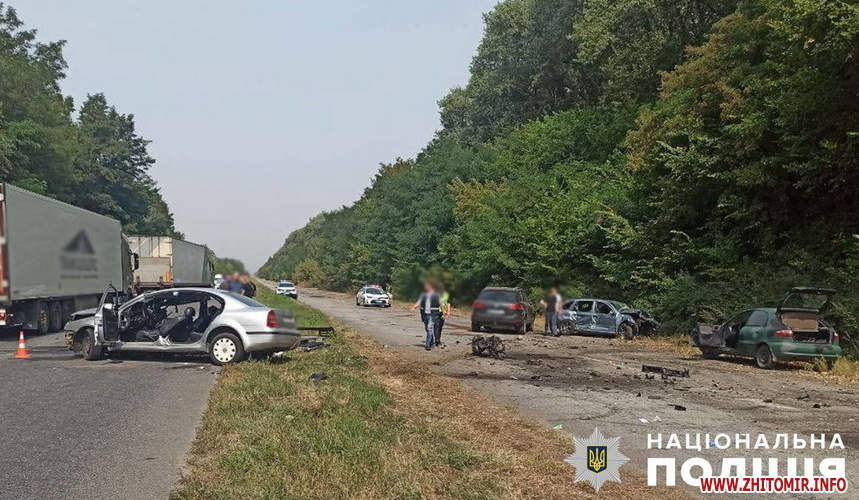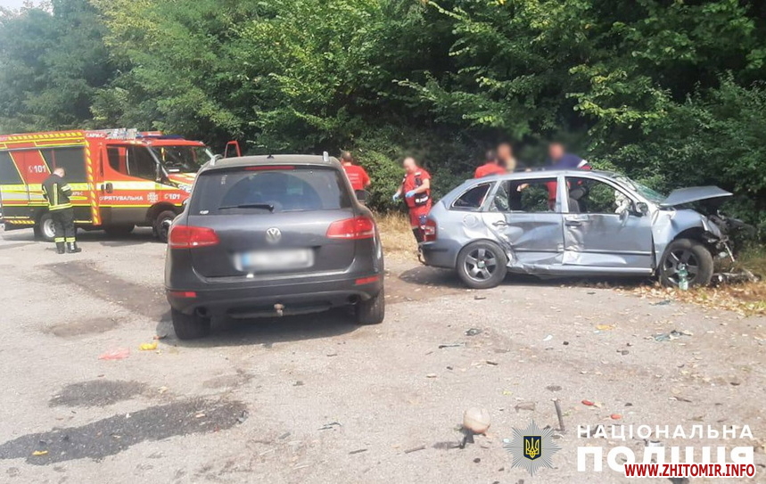 Поліція з’ясовує обставини ДТП у Житомирському районі, у якій отримали травми двоє дітей та п’ятеро дорослих. Автотроща сталася 3 вересня на автодорозі Виступовичі – Житомир – Могилів-Подільський, неподалік села Павленківки.