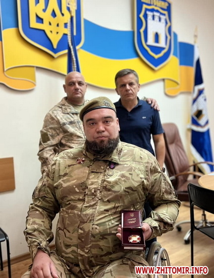«Наш 141 бат ТРО. З початком повномасштабної — ці мужні воїни одні з тих, хто першим добровільно взяв до рук зброю. В підрозділі фактично 100 відсотків — добровольці. Житомир дякує кожному з вас за захист. Ваші вчинки — приклад справжнього патріотизму та незламного духу. Сьогодні мав почесну місію. Передати орден Богдана Хмельницького ІІІ ступеня Андрію Гнатенку. Лейтенант. Командир стрілецького взводу 141-го батальйону. Удостоєний ордену за успішне виконання бойових завдань в районі Кліщіївки. Отримав серйозні поранення. Має ампутації. Слів тут замало. Дякую, Герою. Слава та шана», - написав на своїй сторінці у facebook Сергій Сухомлин.