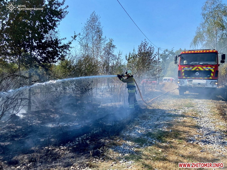 «9 вересня о 10:28 до Служби порятунку «101» надійшло повідомлення про те, що на землях об'єднаного садівничого товариства масиву Барашівський Житомирського району виникла пожежа сухої рослинності на площі 3 га. На момент прибуття рятувальників з’ясувалося, що вогонь із сухої трави перекинувся на дві господарчі будівлі. Існувала загроза розповсюдження полум’я на житлові будинки та лісові посадки, розташовані поруч. Аби загасити пожежу фахівцям ДСНС довелось залучити додаткові сили та засоби», - йдеться в повідомленні.