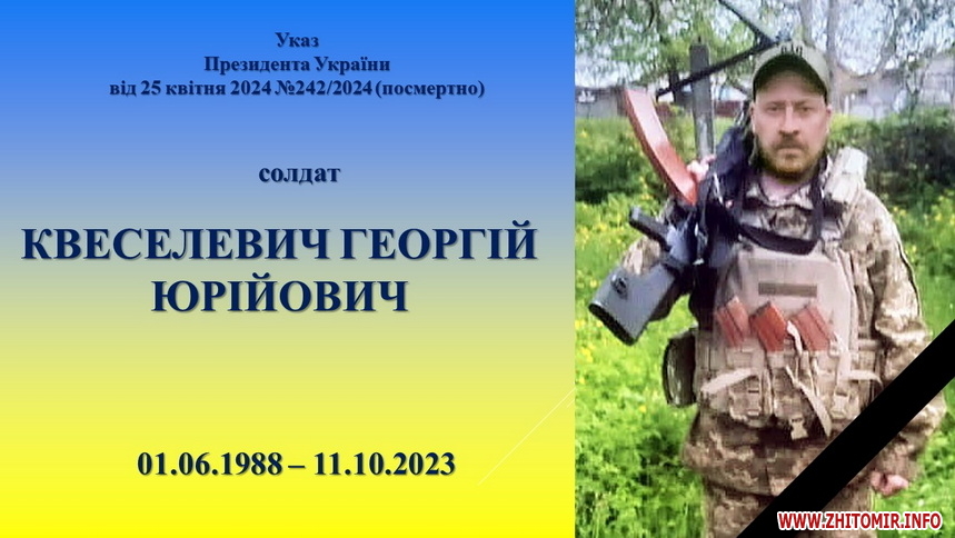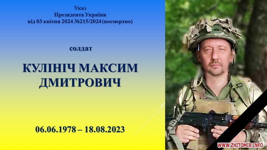 Як повідомляв Житомир.info, у Житомирі 9 серпня 2024 року державні нагороди вручили родинам загиблих захисників.