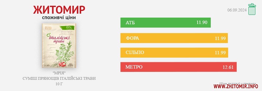 Моніторинг здійснено на основі інформації, отриманої за методом контрольної закупки 06.09.2024 р. у місцях продажу: АТБ, пр. Миру, 15 А, Фора, вул. Лятошинського, 2, Метро, вул. Ватутіна, 55-в, Сільпо, вул. Житній ринок, 1