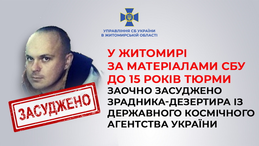 У Житомирі завдяки СБУ 15 років тюрми отримав зрадник-дезертир із Державного космічного агентства України.
