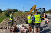 На дорозі Житомирської області ремонтують водопропускну трубу, яка була пошкоджена і через це просідала дорога.