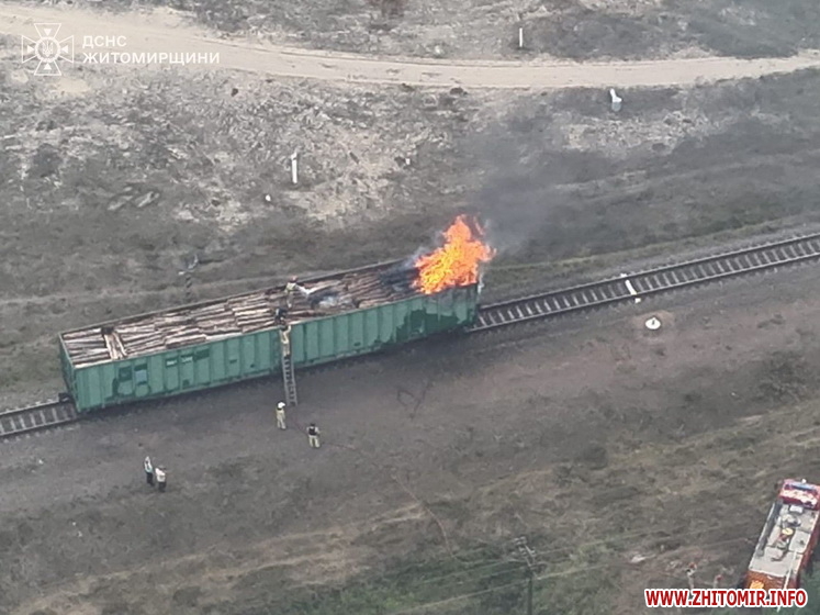 «18 вересня о 12:01 до Служби порятунку "101" надійшло повідомлення про пожежу в залізничному вагоні, наповненому деревиною у с. Васьковичі Коростенського району. До місця події було направлено два відділення вогнеборців. Площа горіння склала приблизно 10 кв.м. Вагон, в якому горіла деревина, оперативно від'єднали від поїзда», - йдеться в повідомленні.