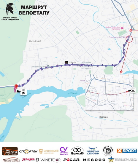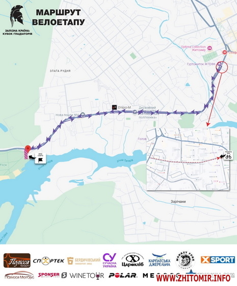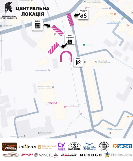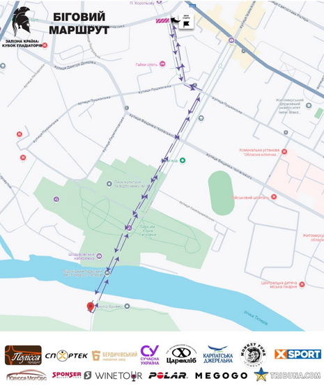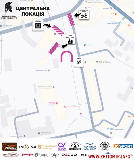 Схеми перебігу змагань та перекриття руху вулиць у Житомирі під час благодійного заходу «Залізна країна: Кубок гладіаторів» 23 вересня 2024 року: