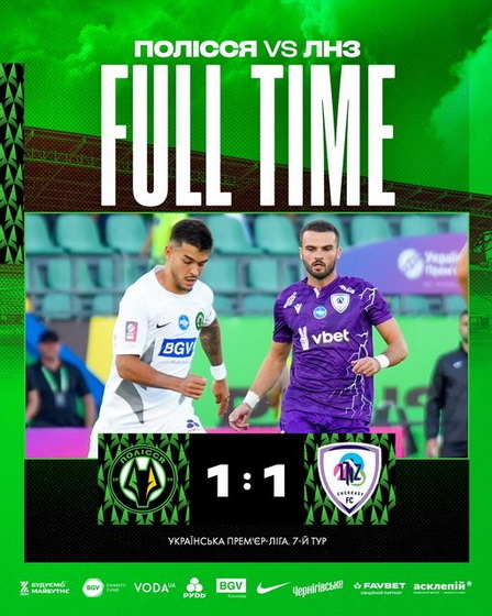 «Нічия в Житомирі. Голом за «Полісся» відзначився Олексій Гуцуляк», - йдеться в повідомленні.