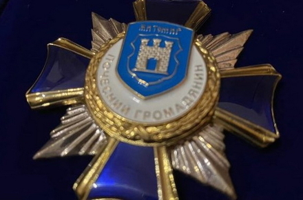 Має відзнаки 1-го, 2-го та 3-го ступенів «За заслуги перед містом Житомиром».