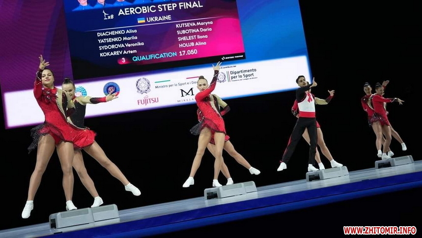 Збірна України посіла друге місце на чемпіонаті світу зі спортивної аеробіки серед дорослих, який відбувався з 27 по 29 вересня в Італії. У складі команди були житомирські спортсменки Ілона Шелест та Аліса Д'яченко.
