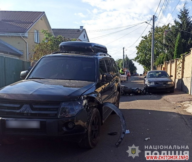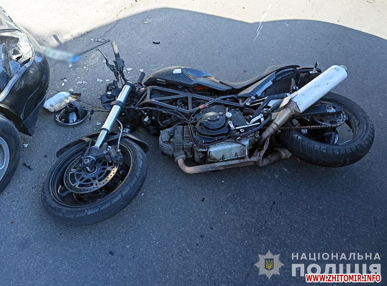 Нагадаємо, 20 вересня на перехресті біля житомирського Сінного ринку не розминулися автомобіль та мотоцикл.