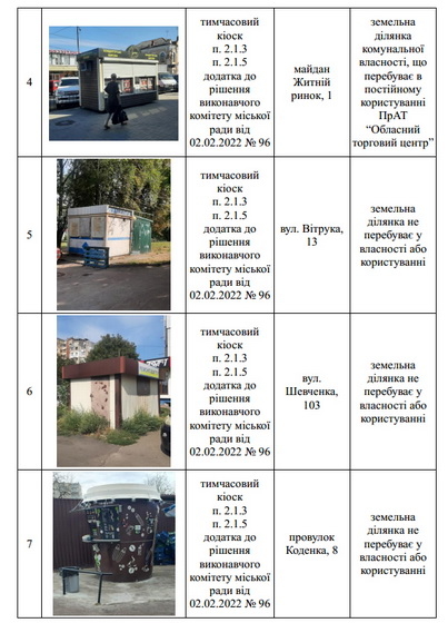 «З метою дотримання вимог законодавства та усунення порушень у сфері благоустрою, утримання об'єктів благоустрою в належному естетичному та санітарному стані, у зв'язку з відсутністю відомостей про наявність будь-якої дозвільної/погоджувальної документації на розміщення об'єктів просимо затвердити перелік тимчасових споруд, самовільно розміщених на території міста Житомира за відсутності на даний час діючого паспорту прив’язки тимчасової споруди, що підлягають демонтажу згідно з додатком», - сказав директор департаменту містобудування та земельних відносин міської ради Ігор Блажиєвський.