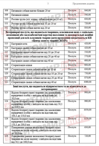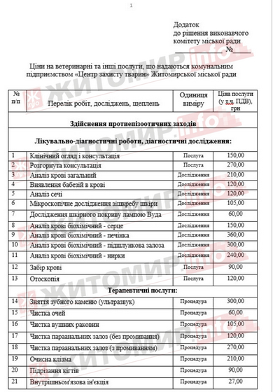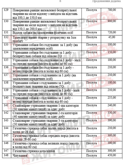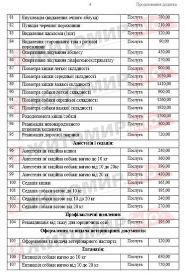 Нижче – затверджені ціни КП «Центр захисту тварин», які почнуть діяти з дати прийняття цього рішення, тобто – від сьогодні.