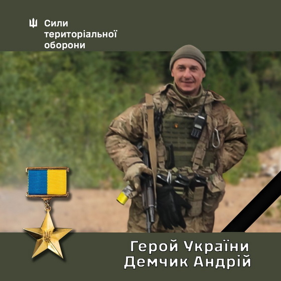 «Бойовий шлях Андрій Демчик розпочав 25 лютого 2022 року, в лавах 138 окремого батальйону 115 бригади Сил територіальної оборони. За час проходження служби неодноразово брав участь у бойових діях. З червня 2023 по січень 2024 року знаходився в зоні бойових дій (райони Харківської та Луганської областей), де проявив себе, як хоробрий та сміливий військовослужбовець в оборонних боях на Куп’янсько-Лиманському напрямку, був номером обслуги СПГ-9. Завдяки відмінній фаховій підготовці та вмілому використанню СПГ-9 його розрахунком було здійснено понад 300 пострілів та знищено більш ніж 20 ворогів», - йдеться в дописі.