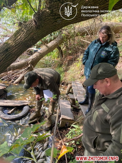 «Оскільки Інспекція не є органом дізнання, державні інспектори з охорони навколишнього природного середовища не уповноважені законом проводити досудове розслідування, діяльність з встановлення осіб, причетних до порушення природоохоронного законодавства, здійснюють відповідні органи. З огляду на зазначене, після отримання результатів досліджень відібраних проб води усі матеріали за даним фактом будуть передані до Головного Управління національної поліції в Житомирській області, а також до Житомирського рибоохоронного патруля.Крім того органи місцевого самоврядування мають вжити заходів для утилізації загиблих водних біоресурсів», - зазначає начальник Управління державного екологічного нагляду (контролю) біоресурсів, природно-заповідного фонду, лісів, рослинного та тваринного світу Житомирської області Андрій Бенчук.