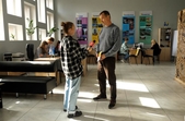 «Наразі в нашому центрі відбуваються заходи для людей різних вікових категорій. Для наймолодших дітей, наприклад, академія першокласника. Є клуб за інтересами для людей поважного віку. Також ми надаємо послуги для родин військовослужбовців і самих військовослужбовців. Завдяки нашим спонсорам ми маємо можливість отримувати квитки на будь-які заходи, які нам пропонують відвідувати, зокрема, кінотеатри. Діти їздили до розважального центру «Країна мрій», в «МакДональдз», ходили на екскурсії в багато місць, які нам надали наші спонсори. У нас функціонує дитяча кімната: тут в будь-який момент можуть прийти дітки з мамами, і мами можуть залишити дітей на певний час, на скільки потрібно. Для дітей проводяться майстер-класи, розвиваючі заняття. Також у нас є загальні заходи, які проходять по всіх центрах, наприклад, діти нещодавно виготовляли обереги для військових та малюнки, які згодом з сіткою, яку плетемо в нашому центрі разом з переселенцями, відправимо для хлопців на фронт», – каже фахівчиня культурних проєктів центру підтримки переселенців «ЯМаріуполь» м.Житомир Анна Антипенко.