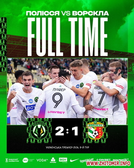 У дев’ятому турі Української Прем’єр-ліги житомирський футбольний клуб «Полісся» зіграв з полтавською «Ворсклою». Матч відбувся 6 жовтня на центральному стадіоні «Полісся» у Житомирі. Перемогу здобули «поліські вовки».