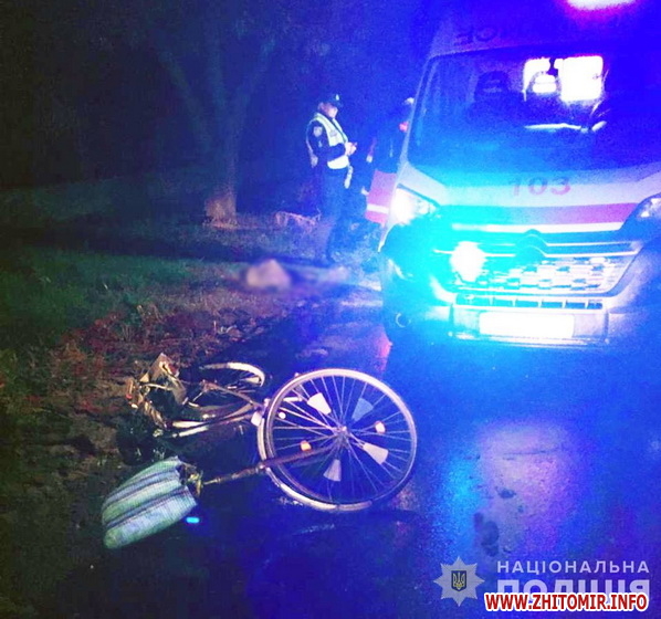 «Увечері 4 жовтня до поліції надійшло повідомлення що автомобіль зіткнувся з велосипедистом, який рухався у попутному напрямку. Водій, не зупинившись, поїхав геть. Оперативники відділу №2 (м. Коростишів) Житомирського райуправління встановили причетного до події», йдеться в повідомленні.