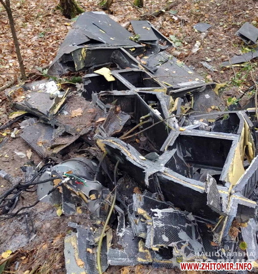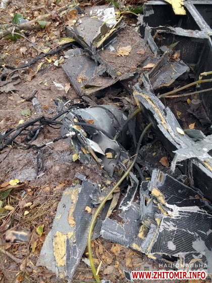 «У лісовому масиві було виявлено місце падіння ворожого БпЛА. Його бойова частина, яка не здетонувала, є вкрай небезпечною та потребує негайного знешкодження на місці виявлення», – коментує заступник начальника відділу вибухотехнічної служби ГУНП в Житомирській області Віктор Ганжа.