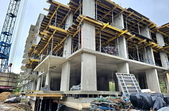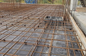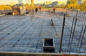 «Ми зараз йдемо по сходах, які є частиною суцільного монолітного каркаса будинку. Ці сходи є безпечнішими за збірні сходові марші та майданчик. Зараз ми перебуваємо на майбутній плиті перекриття між четвертим та п’ятим поверхом. Ми бачимо нижню сітку армування нижньої плити, яка згодом заливатиметься бетоном», - розповідає виконроб Роман.