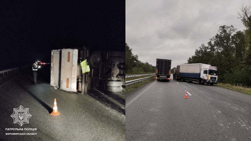 «У зв'язку з дорожньо-транспортною пригодою без потерпілих, що сталась близько 3-ї години ночі, на 182 км автодороги Київ – Чоп (поблизу села Веселе), за участю транспортного засобу MAN, рух транспорту частково ускладнений в напрямку Житомира та здійснюється крайньою лівою смугою. Як встановили патрульні, водій вантажівки не впорався з керуванням та, в результаті чого відбулося перекидання авто», - йдеться у повідомленні.