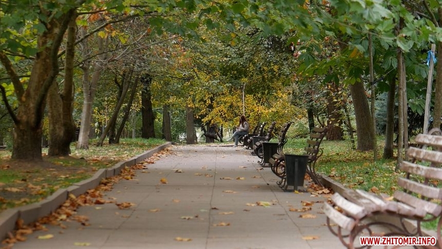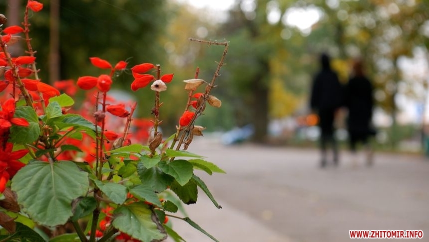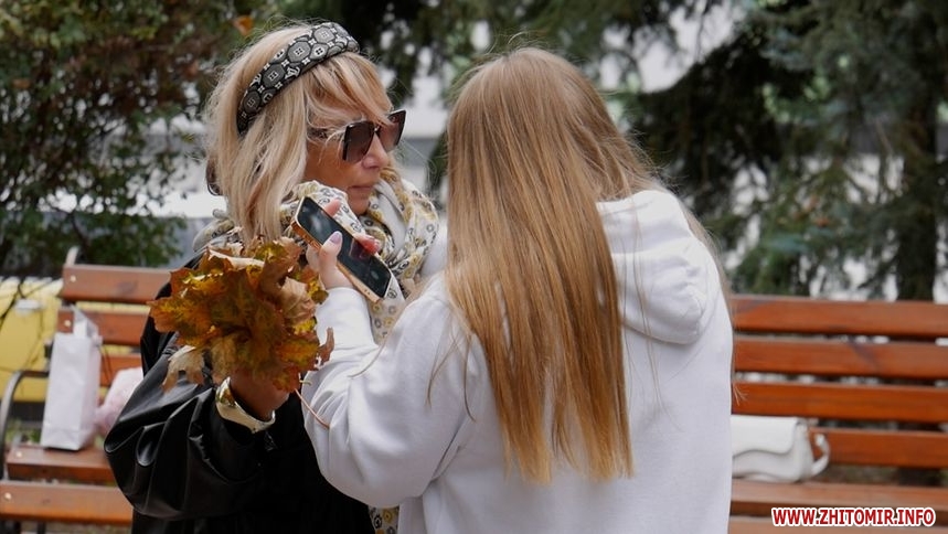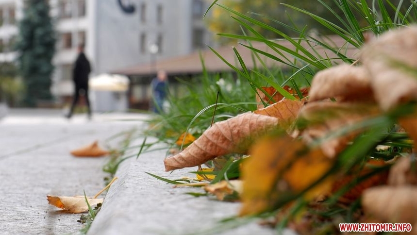 Попри швидке наближення холодів, осінь у Житомирі залишається затишною та, ніби всупереч ранковій повітряній тривозі, спокійною. 15 жовтня міськими парками, скверами та набережною неквапливо прогулюються містяни, які збирають пожовкле листя та фотографуються. Максимальна температура повітря цього дня була +12, адже на екваторі осені, 15-18 жовтня, у Житомирі та області синоптики прогнозували короткочасні дощі та сильні заморозки.