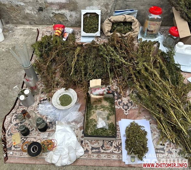 Поліцейські Житомирщини затримали злочинну групу, яка поширювала наркотики Україною. Поліцейські встановили, що налагодив наркобізнес 44-річний житель м. Житомира. До такої діяльності він також залучив 34-річних чоловіка та жінку, жителів Андрушівської громади. Вирощування наркомістких рослин відбувалося у малолюдній місцевості, а сушіння, перероблення та пакування готових партій наркотиків – у будинку, що належить спільниці.