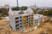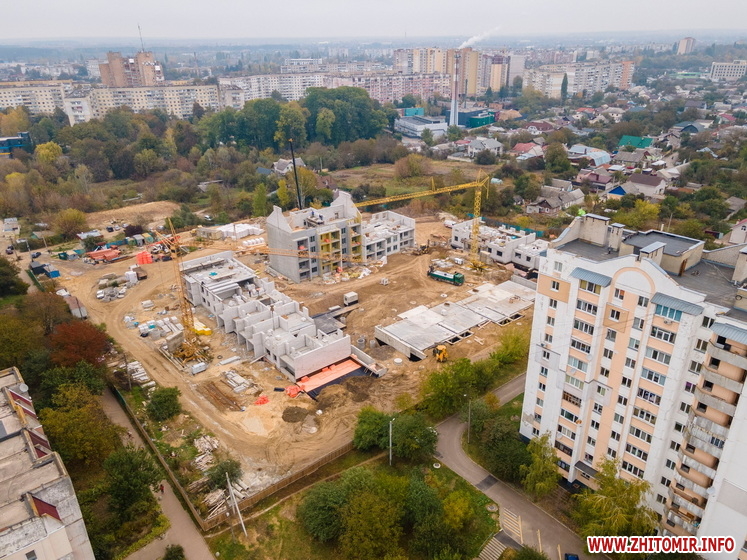 Пресслужба міської ради 23 жовтня показала на якому етапі будівництво житлового комплексу для ВПО, який у Житомирі зводять коштом Європейського Союзу.