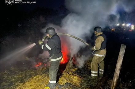 «Сьогодні під ранок на Житомирщині рятувальники ліквідували пожежу, яка виникла внаслідок ворожої атаки. Пошкоджено господарську будівлю, травмованих та загиблих немає», - йдеться в повідомленні.
