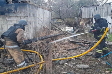 Як повідомляв Житомир.info, в ніч з 25 на 26 жовтня 2024 року у Житомирській області рятувальники ліквідували пожежу, яка виникла внаслідок ворожої атаки: пошкоджено господарську будівлю, травмованих та загиблих немає.
